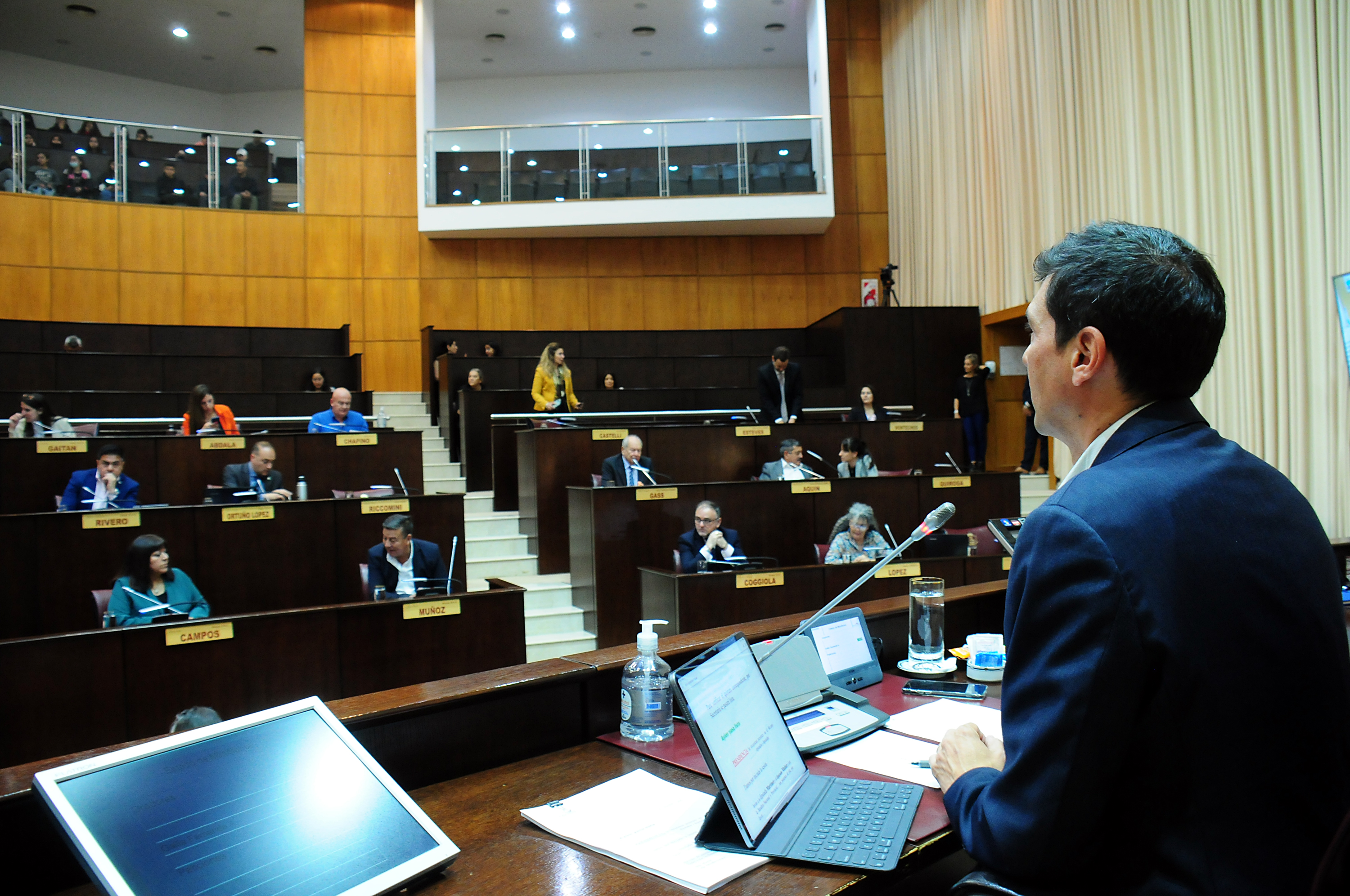 La 19° sesión ordinaria comenzó a las 11.30, bajo la presidencia del vicegobernador Marcos Koopmann. Contó con la participación de los 35 diputados y diputadas y finalizó a las 17.10. En el marco del Programa “Himnos en Vivo-Música Activa” la artista Samanta Juncos interpretó los himnos nacional y provincial al inició de la sesión, acompañada por Marcos Churrarín.
