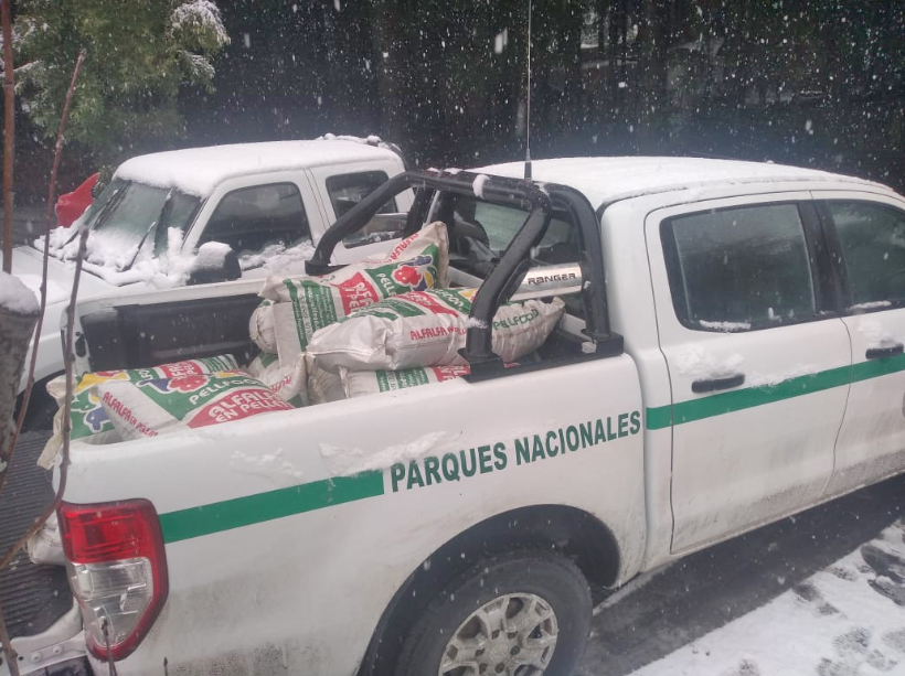 Las bolsas fueron suministradas por las Instituciones citadas, y el Parque Nacional se encargó de la logística y distribución a las poblaciones. Es importante destacar que cada bolsa de pellet equivale a dos fardos y medio de pasto, aportando un alto contenido nutricional y calórico para alimentar al ganado. La cantidad de alimento, se distribuyó según las declaraciones de pastaje presentadas por cada población.