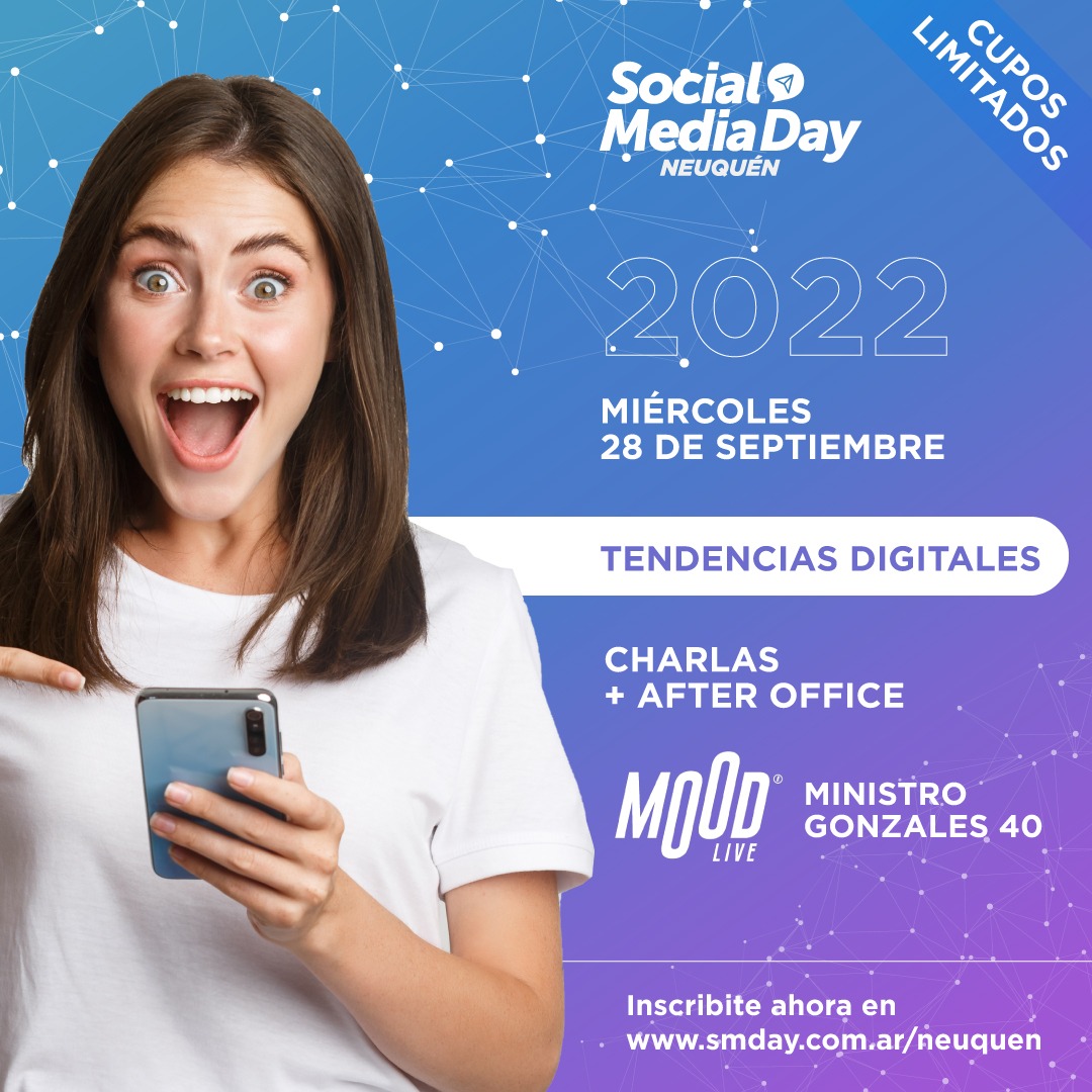 Con el objetivo de ampliar los conocimientos y dar a conocer nuevas herramientas digitales, llega una nueva edición del Social Media Day a Neuquén. El evento se realizará el próximo 28 de septiembre en las instalaciones de Mood Live ubicado en calle ministro González 40 y abarcará charlas, networking, negocios, difusión y capacitación.