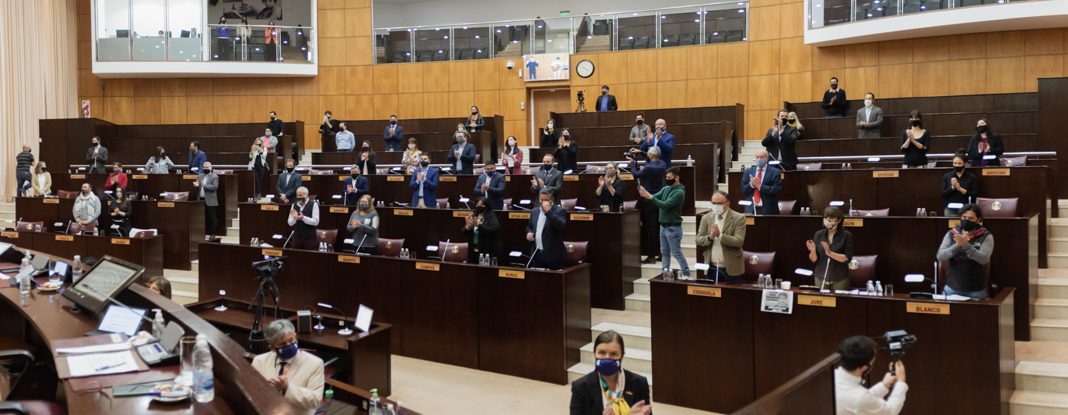 El cuerpo hizo lo propio con la aprobación en particular de la ley 3239 que suspende las subastas judiciales a prestadores públicos y privados del Sistema de Salud, en virtud de la emergencia sanitaria provincial declarada en el marco de la pandemia por Covid-19; la ley 3240 que deroga el artículo 7º de la Ley 2000 (1994) de desregulación de la actividad económica de la provincia, permitiendo a los Colegios Profesionales tener el control de la matriculación para ejercer la actividad en el ámbito provincial; y la Ley 3241 que obliga a colocar dispensadores de alcohol en gel o productos sanitizantes para manos en el acceso a edificios públicos de la provincia.