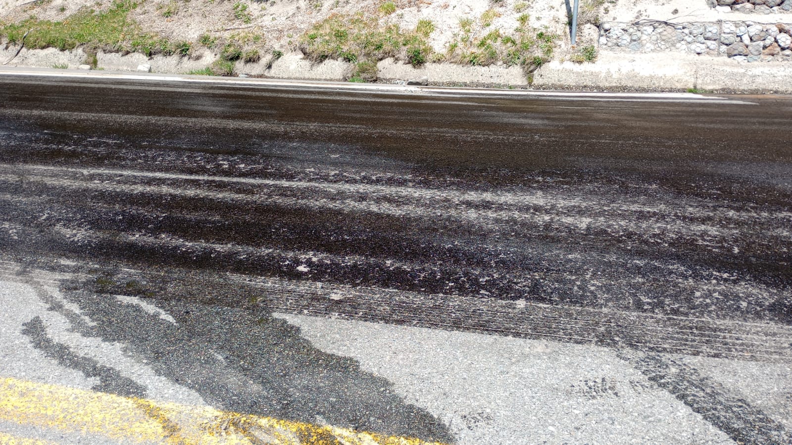 Agentes y equipos de Vialidad Nacional, en colaboración con otras fuerzas de seguridad; asisten con material absorbente en el sector donde se produjo el derrame de combustibles con el objetivo de garantizar la seguridad de las personas usuarias.