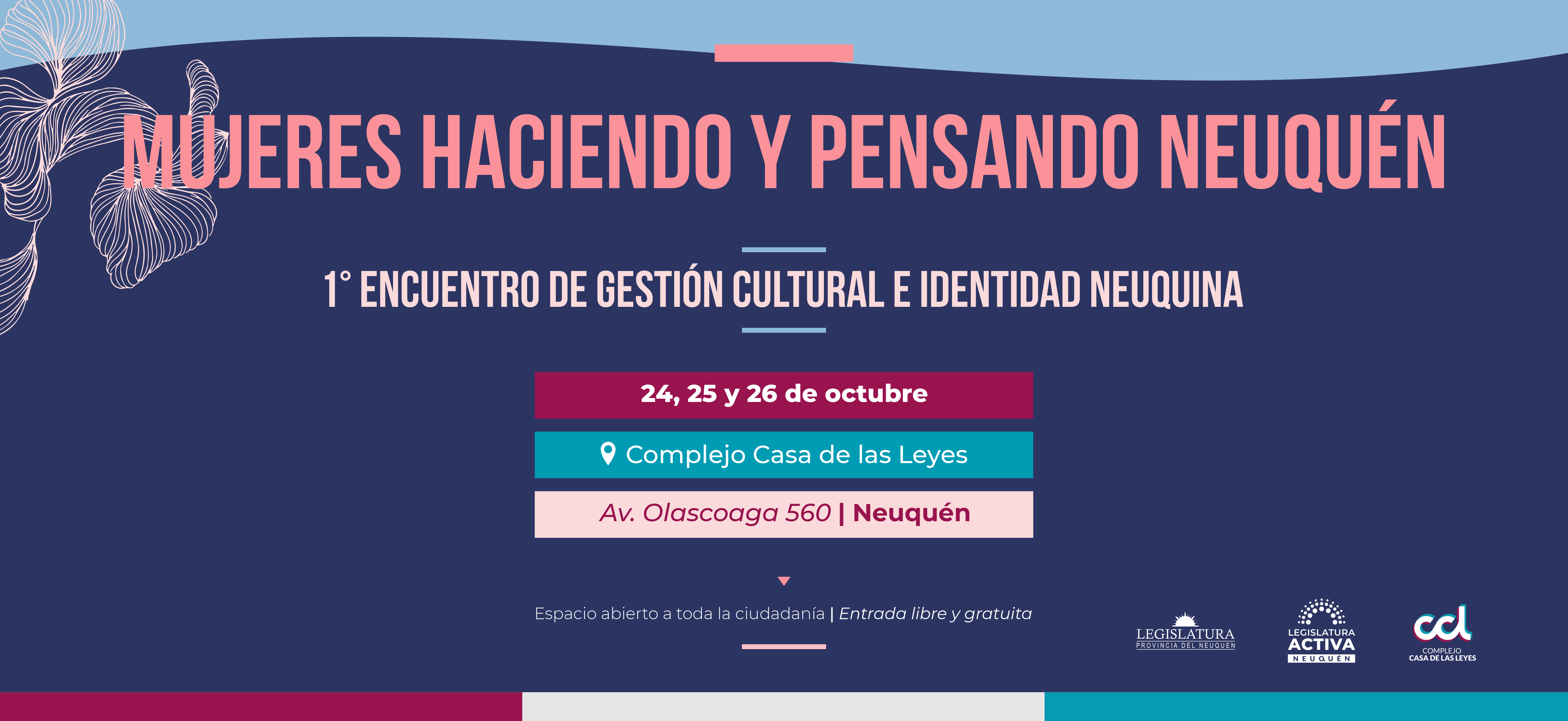 Será los días 24, 25 y 26 de octubre, en Casa de las Leyes (Olascoaga 560), en el marco de “Mujeres haciendo y pensando Neuquén”, el Primer Encuentro de Gestión Cultural e Identidad neuquina. La propuesta del vicegobernador Marcos Koopmann reunirá a 56 mujeres gestoras, artistas, historiadoras, funcionarias, entre otras, para reflexionar, debatir y compartir experiencias y miradas sobre la relevancia del hacer de las mujeres en el entramado cultural neuquino.