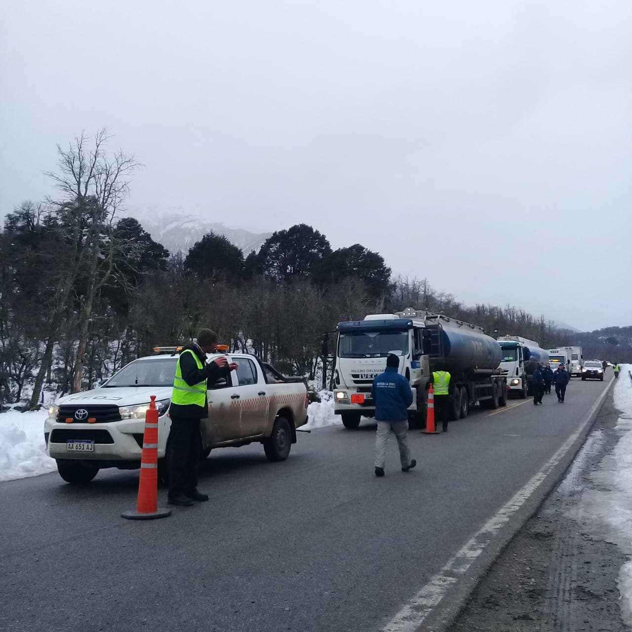 En el día de ayer, Vialidad Nacional, junto con Gendarmeria y la supervisión del COTT local, realizaron trabajos de acompañamiento y custodia a camiones de combustible que se dirigían a la localidad.