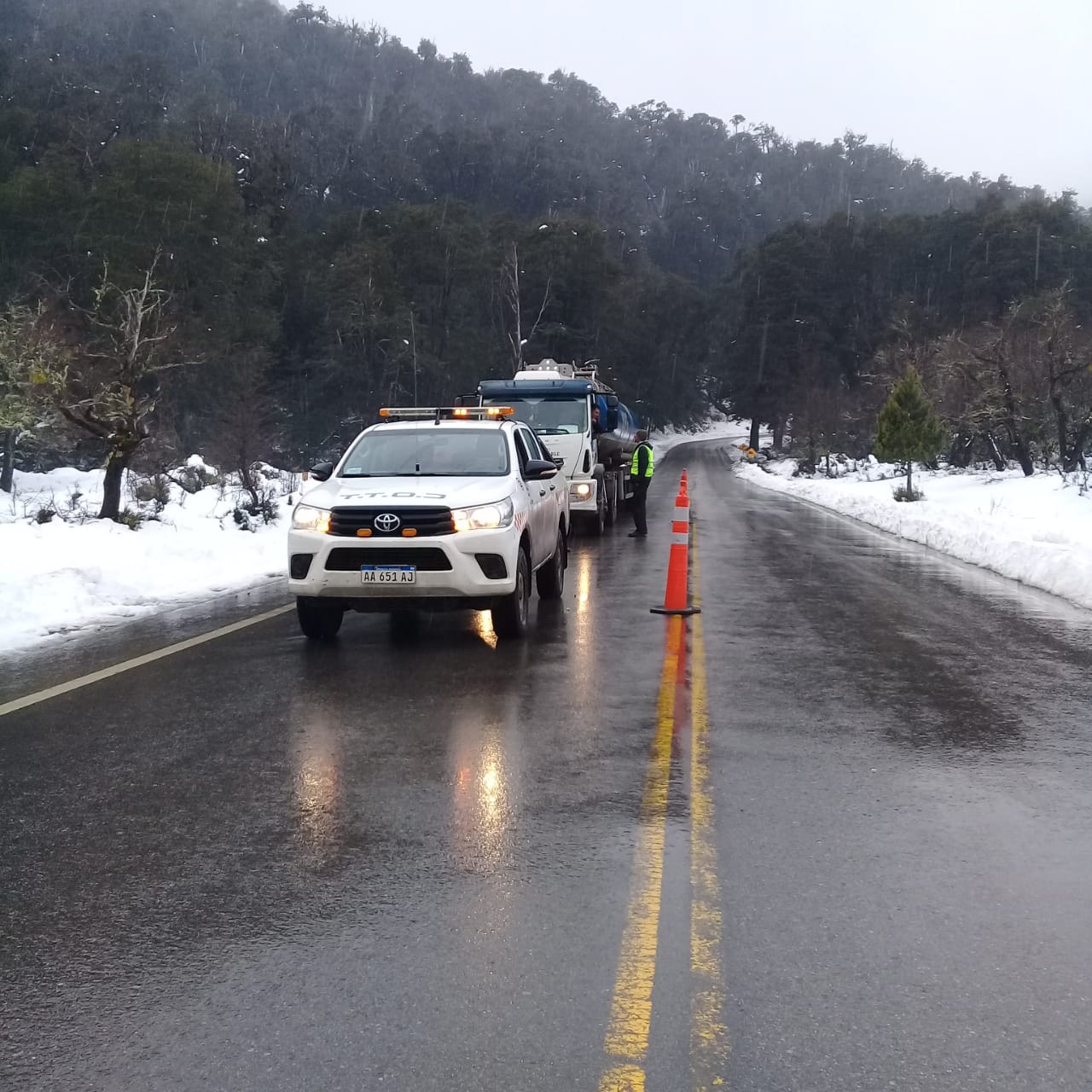 Las acciones realizadas por los diferentes organismos, suponen el acompañamiento por parte de Vialidad Nacional de todos los camiones de gran porte hasta la ruta 63, cruce de Meliquina, donde son recibidos por personal de la Gendarmeria Nacional para ser escoltados hasta la localidad.
