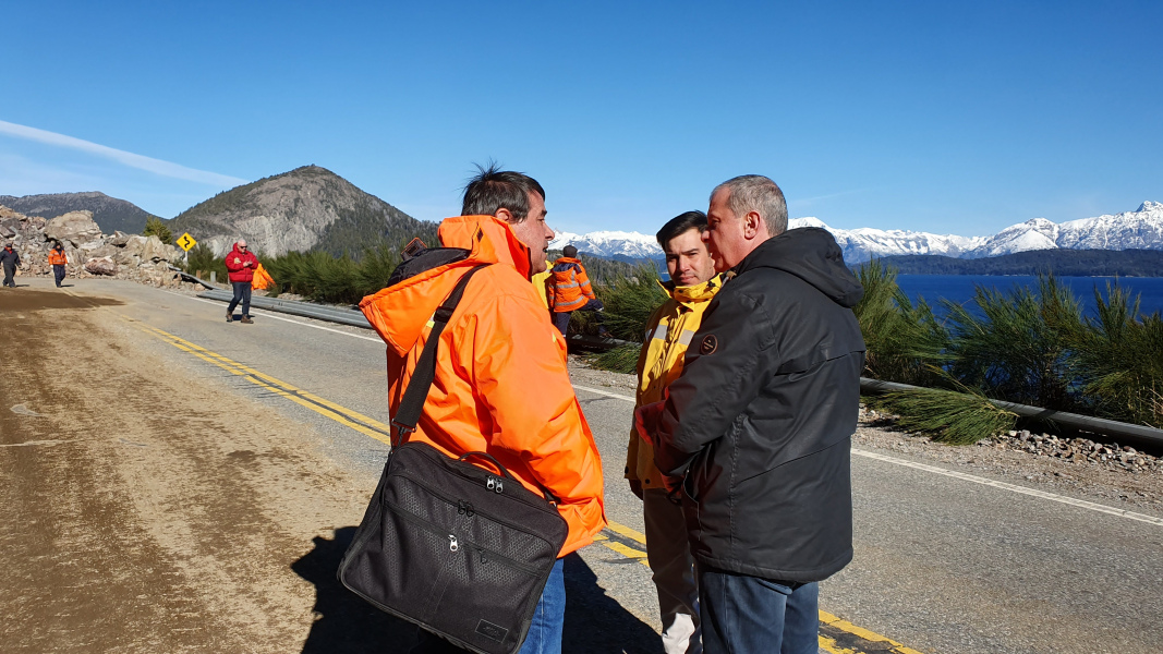 En la oportunidad señaló que “Vinimos hasta el lugar para seguir de cerca esta obra tan importante para los angosturenses comprobando que la gente que está trabajando en el lugar desempeña las tareas con las medidas que la situación exige”. Destacó que “Los escaladores pudieron realizar todo su trabajo previo y en principio está todo listo para que mañana domingo puedan realizar las tareas de remoción de las zonas que ellos consideran inestables o desprendidas de la roca madre”. Sobre el apoyo del municipio dijo que “Es una tarea muy específica y nuestro rol se acota a acompañarlos y estar a disposición para cualquier necesidad logística en la que podamos colaborar o aportar algo”. Además se refirió a los trabajos que se hicieron para la recuperación de los servicios en Villa La Angostura. Destacó que “El EPEN pudo llegar ayer viernes a terminar de energizar el 100 % de los barrios, las cuadrillas de limpieza no han parado y seguimos revirtiendo lo que nos tocó vivir, a partir del temporal”. Añadió que “Seguimos trabajando desde el municipio y con el acompañamiento de todo el Gobierno Provincial, con la presencia aun aquí de Defensa Civil de la Provincia, del SIEN y las distintas Fuerzas, tratando de aprovechar a fondo estos días de sol que nos permiten seguir avanzando con la recuperación total”. También se refirió a las medidas anunciadas por el Gobernador Gutierrez, resaltando que “Ya están lanzadas las medidas del Plan de Reparación económica, comercial y social”. Dijo que “Las tres líneas de crédito se podrán tramitar desde el lunes en el BPN y consultando al IADEP , de modo de lograr tener en marcha la asistencia crediticia para los diferentes sectores económicos a la mayor brevedad posible”. Por último, el intendente adelantó que “Estamos trabajando en una intensa campaña de promoción y de prensa y confío en que vamos a alcanzar a estar completamente operativos y hacer que gran parte de agosto y septiembre sean buenos para todo el sector turístico local”.