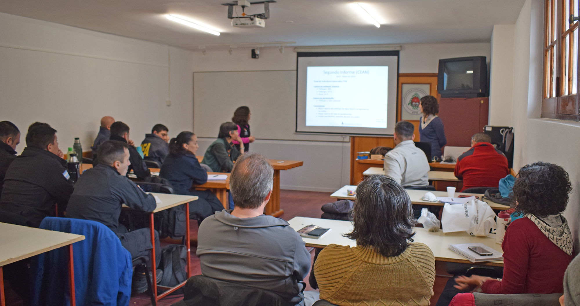 Los disertantes fueron la oficial de la Policía Federal de la Nación Marisol De la Peña, quien destacó los aspectos de seguridad para el personal al momento manipular roedores; y la coordinadora de Zoonosis, Natalia Casas, junto a la técnica Laura Geffner del Ministerio de Salud y Desarrollo Social de la Nación, quienes profundizaron sobre los riesgos y la prevención ante enfermedades transmitidas por roedores. Además, el técnico Martín Izquierdo del Departamento de Conservación del Parque Nacional Los Alerces y el jefe del Departamento de Conservación y Manejo del Parque Nacional Lanín, Nicolás Ferreira, compartieron la experiencia de este fenómeno ocurrido en estas áreas protegidas durante 2001 (PNL) y 2012 (PNLA).