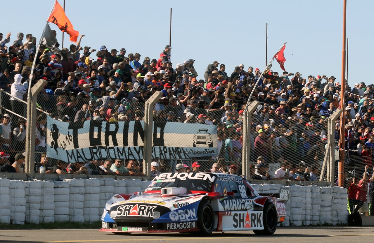 Atrapante. Así será la definición del TC en Centenario el primero de diciembre tras completarse ayer la penúltima fecha en Toay, donde Juan Cruz Benvenuti ingresó entre los tres pilotos de último minuto y se sumó a Urcera para pelear el campeonato de La Máxima. En el mismo momento en el que se cerraba en Toay el penúltimo capítulo del Turismo Carretera, se abría el último, que será en poco menos de un mes en el autódromo de Centenario, el primero de diciembre, cuando se dispute el Gran Premio Coronación que consagrará al campeón de la temporada. Una definición apasionante que tendrá a dos locales involucrados en la lucha por el campeonato: José Manuel Urcera (Chevrolet), ganador de la etapa regular, y Juan Cruz Benvenuti (Torino), 12° y 7° respectivamente ayer. Toay fue un aperitivo de lo que va a ser la gran final en Centenario con un autódromo repleto y una carrera intensa, muy peleada, que tuvo una atractiva lucha por la punta entre el campeón Agustín Canapino -nuevo líder de la Copa de Oro- y Mariano Werner (se anotó en la carrera por la corona al obtener el triunfo que lo habilita para convertirse en aspirante) hasta un final polémico que le puso más pimienta al final que se viene. Juan Cruz Benvenuti (Torino) -tercero en la serie más rápida que ganó el propio Werner-, tras la tercera reanudación que tuvo la final, en la octava vuelta fue superado por Gastón Mazzacane y recuperó la posición tras el incidente de Aguirre. Al final, el angosturense logró ingresar entre los tres pilotos de último minuto y también se anotó en la pelea. Para el Neuquino fue un gran fin de semana que comenzó con buenos resultados desde el.momento mismo de los entrenamientos El sábado la primera clasificación lo había encontrado en el cuarto lugar pero en la segunda instancia quedó finalmente en el puesto 7 La primera serie lo mostró en un expectante puesto 3 de largada pero las 5 vueltas cronometradas no le alcanzaron para mejorar el puesto inicial En la final largó desde el puesto 7 y allí estuvo toda las vueltas, disputando con las tensiones de la competencia que era definitoria de chances para campeonar, para varios de los integrantes de la Copa de Oro Para Juan Cruz el puesto 7 final fue una importante sumatoria de puntos que lo introdujeron a la posibilidad de pelear por el Campeonato Así el angosturense llegára al Coronacion en Centenario en el puesto 10 de la tabla y con posibilidades técnicas de soñar con el Campeonato En su última presentación en Neuquén, Benvenuti debutó en las TCPICKUP, nada menos que con un triunfo, lo cual demuestra que para el joven piloto que fue Campeón del TC Pista 2018, parecen no haber imposibles Las chances están pero la realidad manda y en los propósitos de Benvenuti, que mantiene la cabeza lúcida y tranquila, con el objetivo de estar entre los 15 cumplido, se presenta quizás prioritario, pelear por la realidad de un podio y por que no, un triunfo, para cerrar lo que a esta altura ya es un año exitoso e inolvidable. El primer dia del último mes del año, lo sabremos. José Manuel Urcera dejó Toay sin el objetivo de recuperar la punta, y perdiendo una posición (llegó como escolta y quedó tercero), pero con las chances intactas para jugarse todo en el cierre que será en el patio de su casa. Es que Manu quedó a 15 puntos nada más del campeón cuando hay 70,5 en disputa. El cipoleño reconoció desde que llegó a Toay que iba a ser difícil poder pelear la punta asumiendo las limitaciones del potencial de su auto para poder frenar a Werner y Canapino en un circuito muy veloz.Ya antes de la final (fue quinto en la serie) había perdido la segunda posición y tras largar 14°, concluyó 12°. Pero al quedarse Aguirre subió al tercer lugar que le permite renovar los sueños.