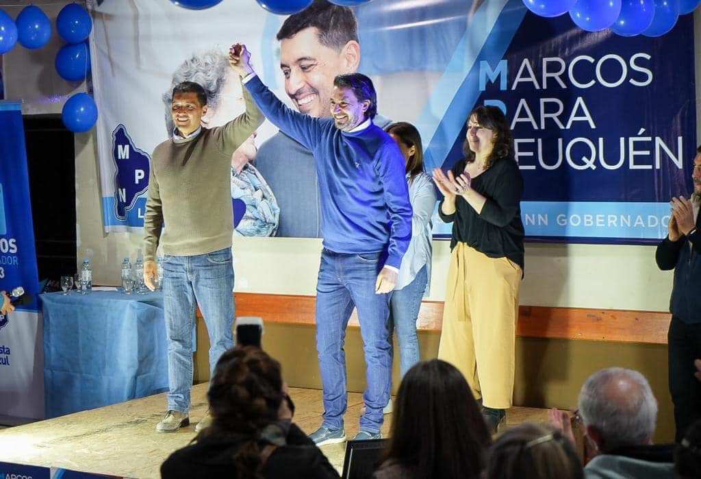 Durante la tarde había hecho lo propio en Junín de los Andes, donde la Lista Azul presentará dos candidatos que competirán con franjas: el actual secretario de Obras Públicas del municipio, Diego Marcovesky, y el presidente del Centro Tradicionalista Huiliches, Rubén Bastías.