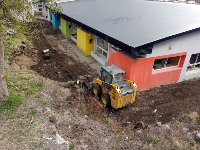 Personal de mantenimiento de escuelas, dependiente de la Secretaría de Servicios Públicos, informa las tareas realizadas en el edificio del Jardín Maternal N°82 de la localidad.