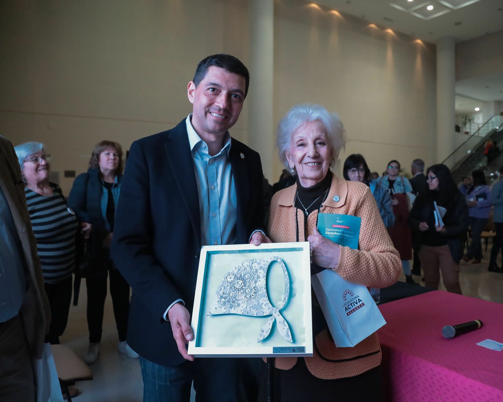 Participaron de la presentación el hijo de Estela de Carlotto, Guido Carlotto; la vicegobernadora de Neuquén mandato cumplido, Ana Pechen; la ministra de las Mujeres, María Eugenia Ferraresso; su par de Salud, Andrea Peve; la subsecretaria de Derechos Humanos de la provincia, Alicia Comelli; la presidenta del Consejo Provincial de Educación, Ruth Flutsch; diputadas del bloque del MPN y autoridades de Cámara.
