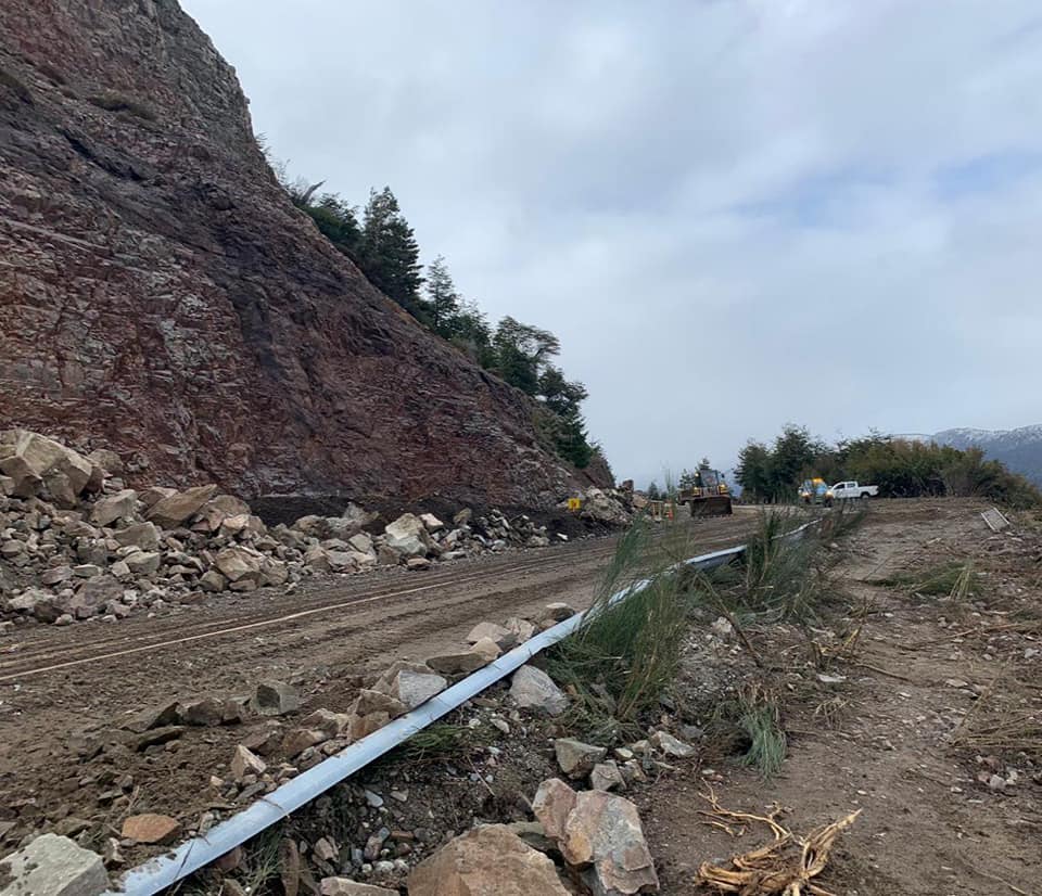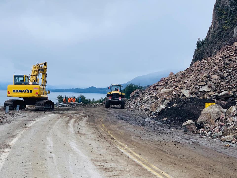 Maquinaria de la empresa Coarco trabaja en el retiro del material depositado sobre la calzada de la ruta 40 en el kilómetro 2094 Las detonaciones de ayer por la tarde dieron resultado y luego de las inspecciones visuales realizadas a primera hora de hoy domingo, por parte del personal del Ejército y de Vialidad, se dio inicio al operativo de remoción del material que permaneció sobre la ruta, desde el martes 23 Luego de la remoción de ayer, de los sectores y rocas que habían quedado en situación de inestabilidad sobre la ladera, y ante la escasa luz solar que se registraba ayer sábado las tareas se para iarone como positivas y se dejó para hoy domingo una última inspección del terreno Esta mañana , apenas unas horas después de la detonación que se produjo exactamente a las 18,45 y que fue claramente percibida y oída en casi todos los sectores de la localidad, las autoridades dieron el visto bueno a la entrada en escena de la maquinaria para quitar el material que está sobre la cinta asfáltica. Los resultados, a horas del mediodía, parecen ser muy buenos, ya que se avanza a ritmo sostenido y ya se empiezan a barajar opciones de restablecimiento del tránsito. Seguramente desde Vialidad Nacional se emitirá el parte oficial que dirá con exactitud la fecha, la hora y el modo en que se irá recobrando el paso de automotores por el lugar que hoy cumplirá 26 días desde que se produjo el acontecimiento que aisló a la localidad y obligó a implementar un sistema de transporte lacustre para ingresar y salir de la localidad con destino a Bariloche