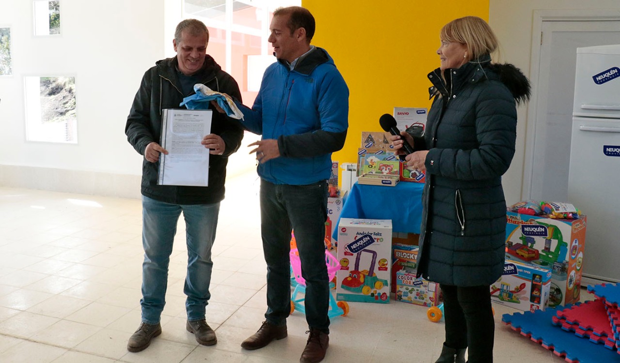 El gobernador Omar Gutiérrez inauguró hoy en Villa La Angostura el nuevo edificio del jardín maternal del barrio El Mallín y las ampliaciones en el CPEM Nº 68, que contaron con una inversión total de más de 32,5 millones de pesos. Además, el mandatario provincial recorrió obras en ejecución en San Martín de los Andes, como parte de una jornada de trabajo en el Sur de la provincia. En Villa La Angostura, Gutiérrez destacó que las obras “vienen a dar respuesta al crecimiento y desarrollo poblacional y urbanístico” que tiene la localidad. “Tenemos que agradecer a todos los que pusieron su esfuerzo y granito de arena para hacer realidad esto”, dijo y recalcó que en la provincia “obra que empieza, obra que se termina”. “Estamos muy contentos de terminar esta obra y de que tengamos el tiempo de que rápidamente empiece a prestar la finalidad pública que necesita Villa La Angostura”, señaló el gobernador en el jardín y comentó que se trata de “una obra que visualizamos y construimos descentralizadamente, generando arraigo en este barrio”. Por su parte, el intendente de Villa La Angostura, Guillermo Caruso expresó que “cada vez que se logra una concreción de obra, son días de alegría”. Además, indicó que “esto es fruto del trabajo mancomunado entre el municipio y la provincia en forma permanente, en cabeza del gobernador y a través de la Upefe (Unidad Provincial de Enlace y Ejecución de Proyectos con Financiamiento Externo)”. En el caso del jardín, los fondos fueron gestionados a través de la Upefe. El edificio cuenta con cuatro salas, un salón de usos múltiples, oficinas, dependencias y áreas de servicio, con una superficie de 575 metros cuadrados. Albergará a 192 niños y niñas. Demandó una inversión de 18,6 millones de pesos. El Centro Provincial de Enseñanza Media N° 68 fue ampliado en una superficie total de 342 metros cuadrados y beneficiará a 365 estudiantes. Las obras de remodelación incluyeron un aula de clases, un aula multipropósito y una biblioteca. Las ampliaciones demandaron 14,2 millones de pesos