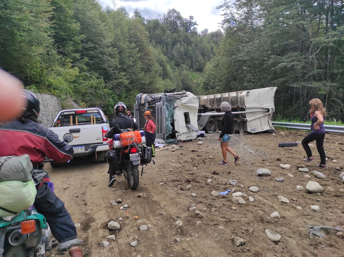 Raúl Tierno, jefe del Cuartel de Bomberos Voluntarios de Villa La Angostura, informó que el vuelco ocurrió en una pendiente conocida como bajada Ruca Malén, a unos 25 kilómetros de Villa La Angostura. “El camión Scania con tolva volcó en una pendiente de curvas y contra curvas, en una pendiente muy complicada, muy pronunciada que se conoce como bajada Ruca Malén. El chofer debió ser trasladado al hospital Dr. Oscar Arriaz por las heridas recibidas, pero no tenemos información en este momento del estado de salud actual”, sostuvo Tierno.
